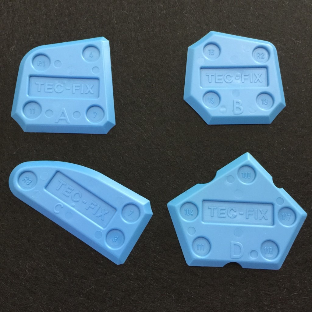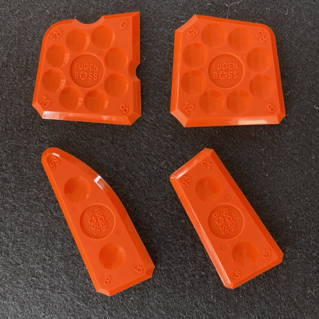 Hinweis: Die Bezeichnungen „R“ auf den jeweiligen Modellen unserer Fugenglätter sind explizit nicht als Radiusangaben zu verstehen. Diese stehen lediglich für “R” gleich “Rund” und dienen nur als Unterscheidungsmerkmal für die Außenrundungen der jeweiligen Modelle unserer Silikon-Applikatoren.